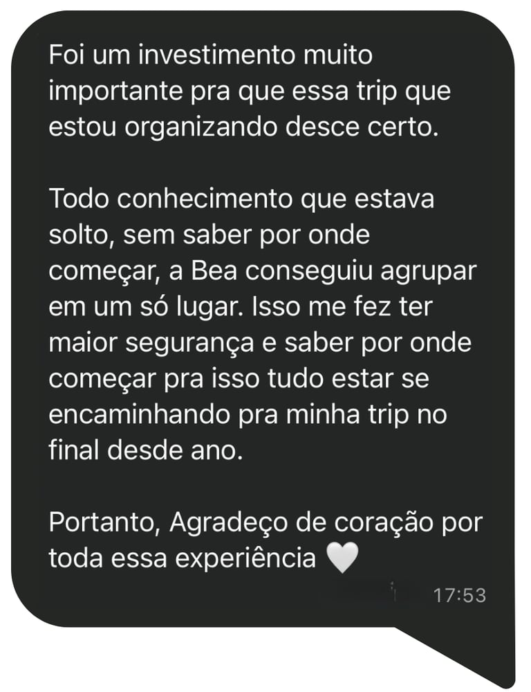 Assim, entenderei mais sobre o seu estilo de viagem e necessidades.
